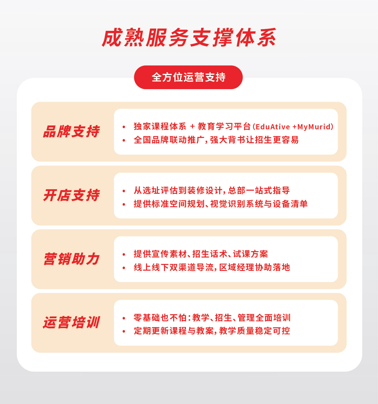 加盟条件 教育初心 · 资金到位 · 场地合规 · 全职投入 |